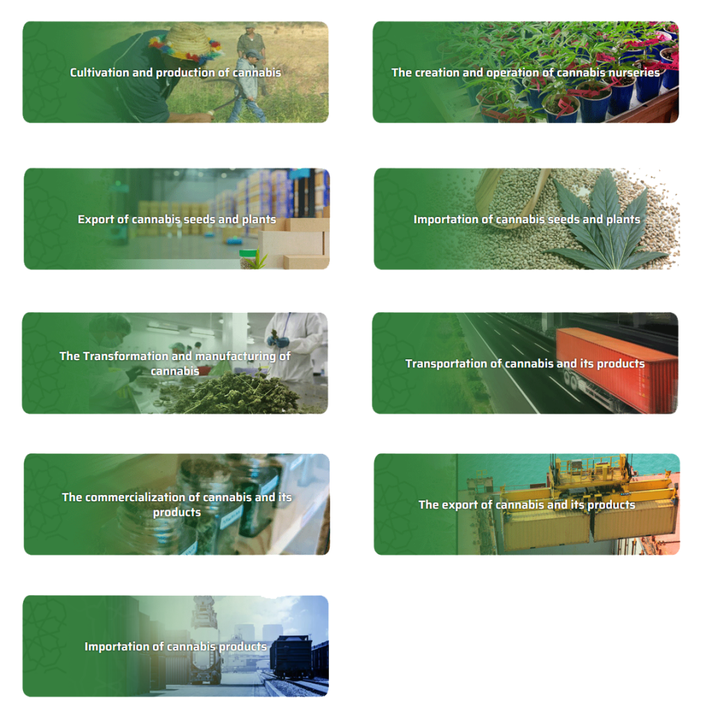 Son emitidas por la Agencia Nacional de Regulación de las Actividades relacionadas con el Cannabis las siguiente nueve autorizaciones: